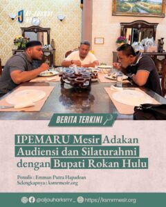 Ksmrmesir.org (20/5) — Ikatan Pelajar Mahasiswa Rokan Hulu (IPEMARU Mesir) mengadakan audiensi dan silaturahmi dengan Bupati Rokan Hulu, Bapak Anton,