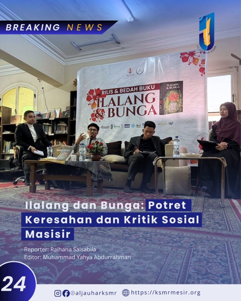 Ksmrmesir.org—Rilis dan bedah novel Ilalang dan Bunga karya Ihya digelar oleh Pena Darussalam (Pendar) bersama Perpustakaan Mahasiswa Indonesia Kairo (PMIK) pada Jumat, 13 Februari 2026. Kegiatan ini menghadirkan dua pembedah, Naila Fauziah dan Lalul Azmil, yang mengulas karya tersebut dari perspektif kritik sastra dan realitas sosial.