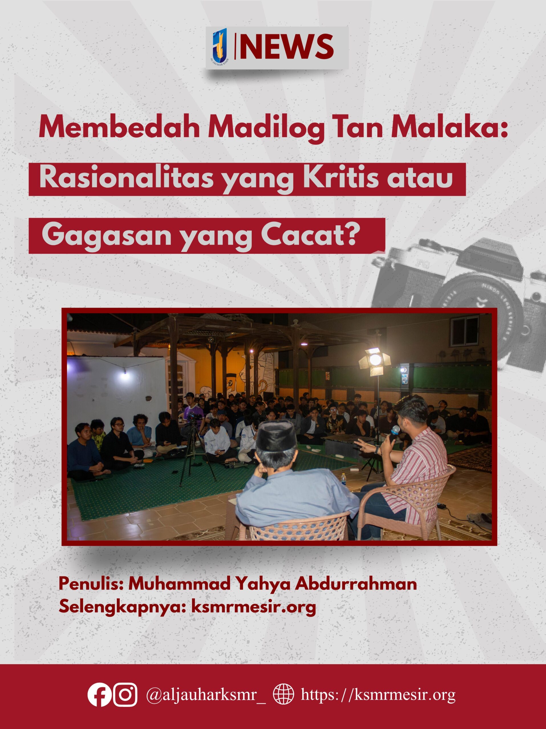 ksmrmesir.org – Teras Falsafatuna kembali menggelar diskusi bulanan pada Sabtu (25/10) dengan mengulas karya fenomenal Madilog karangan Tan Malaka. Acara yang berlangsung di Kafe Gegek.id, Hay Asyir, ini menghadirkan Idzharul Hasan sebagai pemateri dan Rakish Al Hazen sebagai moderator.