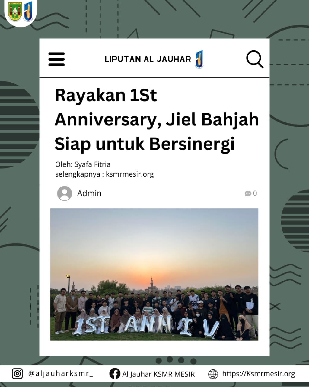 Ksmrmesir.org (26/10) Demi melanjutkan eksistensi, angkatan kekeluargaan KSMR Jiel Bahjah rayakan 1st Anniversary.