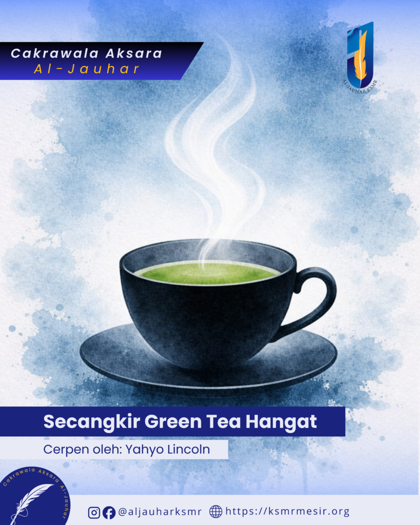 “Heum, enggak apa-apa. Green tea hangat juga enak malam-malam begini,” ucap Aji.