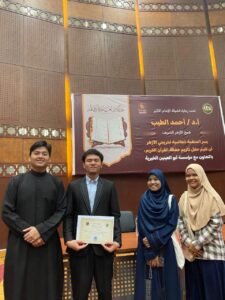 Ksmrmesir.org – Prosesi Penyerahan Hadiah Muhammad Albar, warga KSMR yang berhasil meraih juara satu dalam Musabaqoh Hifdzil Quran di Markaz