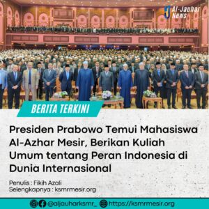 Ksmrmesir.org – (19/12) Presiden Republik Indonesia —Prabowo Subianto— dalam rangka kunjungan kenegaraannya ke Mesir, menyempatkan diri bertemu dengan mahasiswa Indonesia